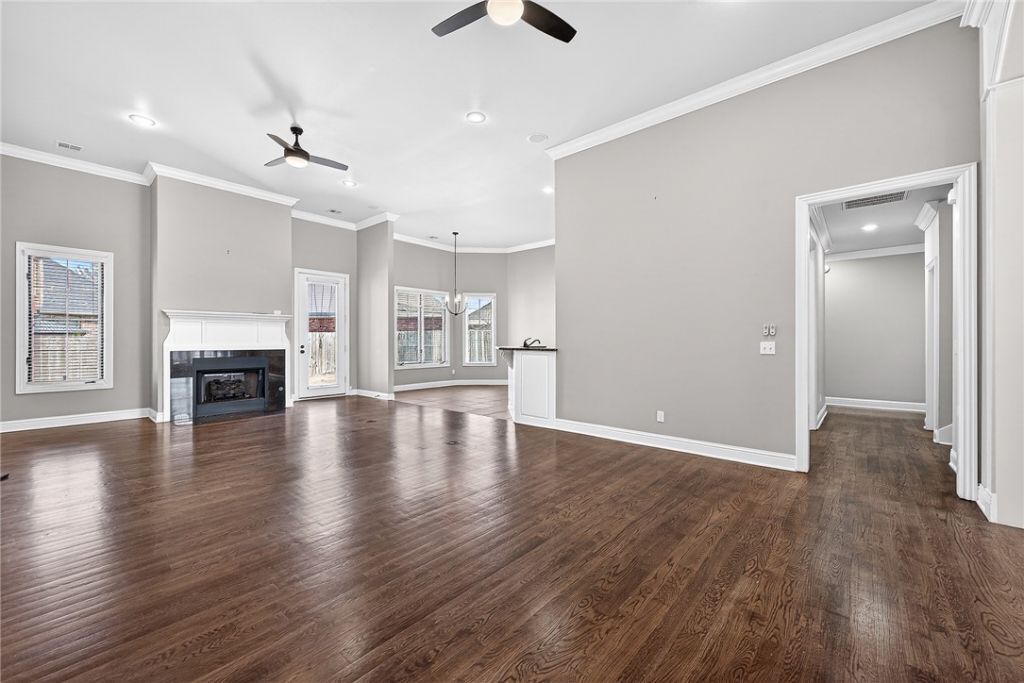 Brand New Roof 2026! This beautifully maintained 4-bedroom, 3.5-bath Creekwood home in West Rogers offers comfort, style, and a functional layout. With 3,373 sq ft, you'll love the solid wood floors, detailed trim, and abundant natural light. The main living area features a gorgeous fireplace and flows seamlessly into the formal dining room and updated kitchen with granite countertops, ample cabinetry, and a breakfast nook. The huge main-level primary suite provides a relaxing retreat with jetted tub, walk-in shower, and spacious closet. Two bedrooms with jack and jill bathroom also on 1st floor! Upstairs offers 4th bedroom plus a large bonus room. Wait until you see the walk-in storage area- GIANT! Step outside to a small but mighty backyard with large covered patio and outdoor fireplace, ideal for entertaining or unwinding. Situated in a community with neighborhood pool, park, and pond, and the best community feel, this home offers a great combination of amenities and location. Minutes to I-49 and Promenade!